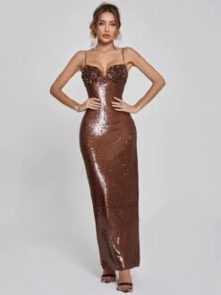 Feel like a million bucks in the Lorelei Brown Sequin Dress! This sequin occasion piece features a lovely maxi length, and a flirty split at the back. Perfect for those super special events coming up, pair this beauty with strappy heels, a clutch and statement jewellery to complete the look!