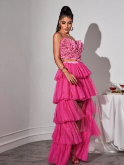 Introducing the stunning Loryn Tiered Tulle Trimmed Skirt, a must-have for any fashion-forward individual. The intricate tiered tulle design adds a touch of elegance and charm to any outfit, making you stand out from the crowd. Embrace your unique style and turn heads with this gorgeous skirt!