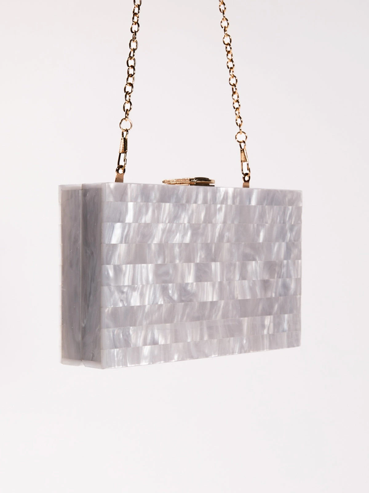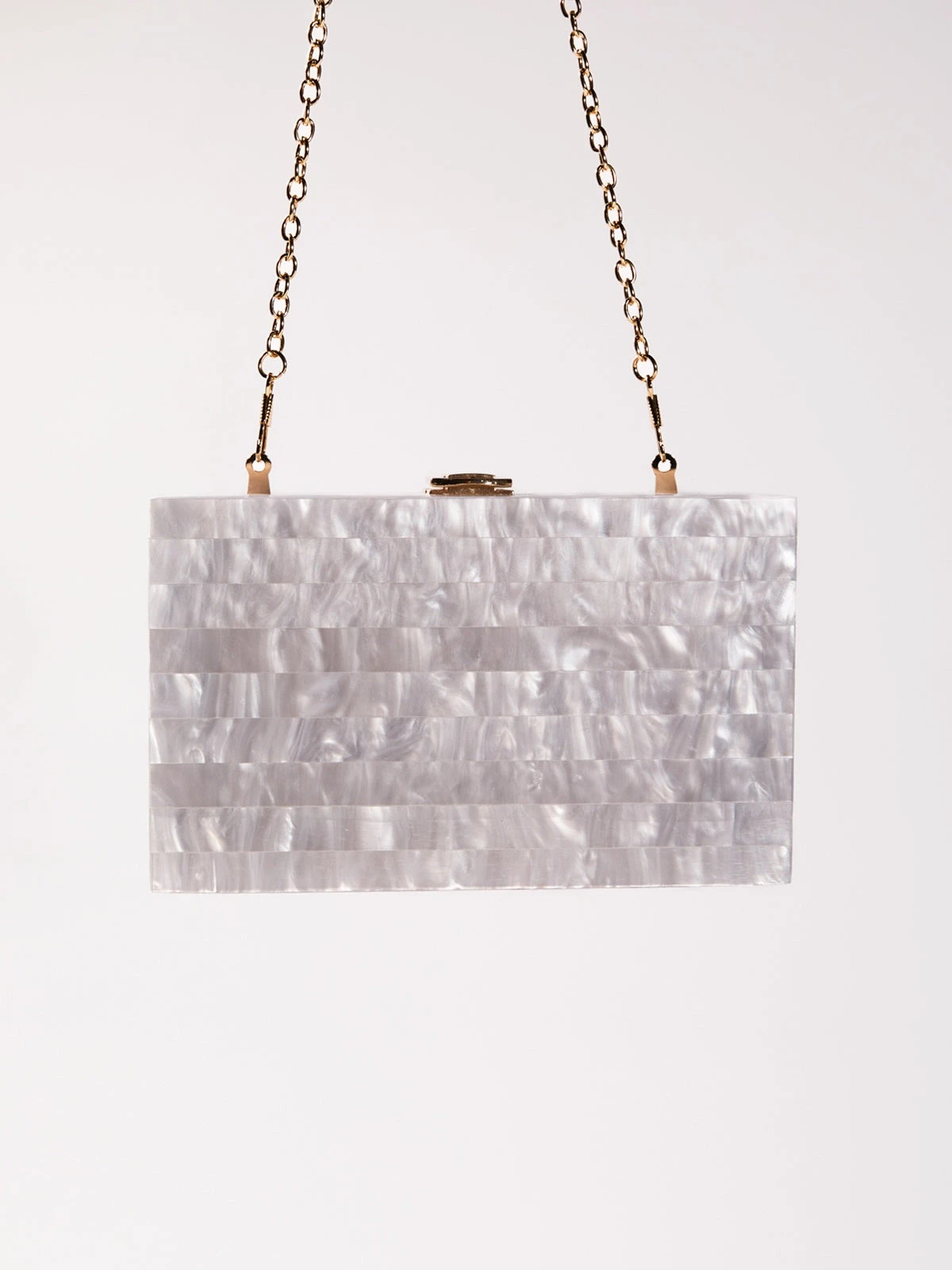 The Mahesa Acrylic Convertible Clutch in White offers a sleek and sophisticated accessory for any occasion. Its crisp white acrylic design exudes modern elegance, while the convertible feature lets you effortlessly switch between a chic clutch and a convenient shoulder bag. Lightweight yet spacious enough for your essentials, this versatile piece adds a polished touch to both casual and formal looks. Elevate your style with the timeless appeal and practical design of the Mahesa Acrylic Convertible Clutch in White.