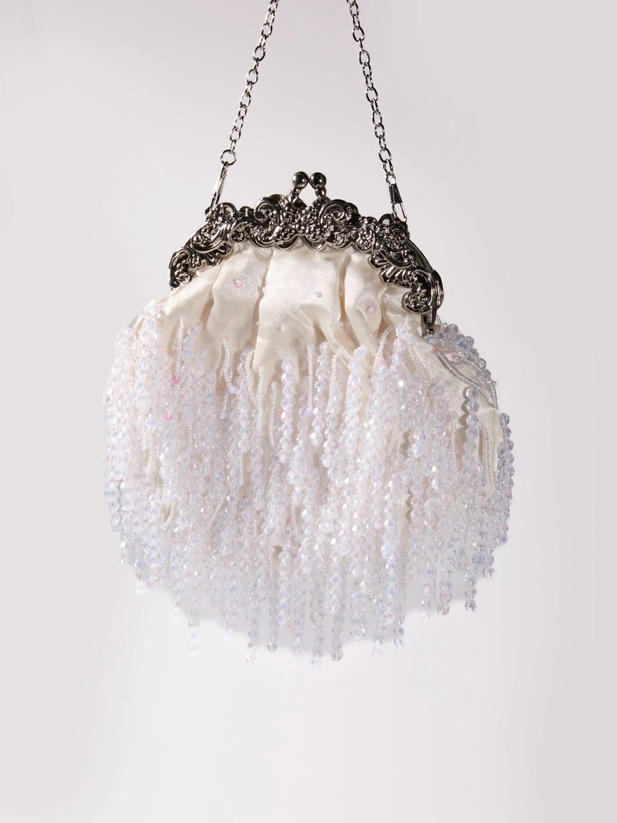 The Mahola Beaded Satin Bag exudes timeless elegance with its luxurious satin finish and intricate beadwork. Perfect for weddings, parties, or special occasions, this bag adds a refined touch to any outfit. Its compact size holds your essentials securely while elevating your look with sophisticated charm. Make a graceful statement wherever you go with the Mahola Beaded Satin Bag.
