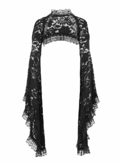 Add a touch of elegance to any outfit with the Malaz Flare Sleeve Lace Shrug. The delicate lace and flared sleeves create a romantic and sophisticated look, perfect for any special occasion. Stay warm and stylish with this versatile and timeless piece.