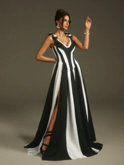 Turn heads with the Marella Plunge Neck Split Maxi Dress, designed to showcase your confidence and style. The daring plunge neckline adds a bold, elegant touch, while the high slit creates a graceful, flowing silhouette that moves with you. Perfect for special occasions or glamorous nights out, this maxi dress combines sophistication and allure to make you feel unforgettable.