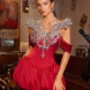 It has NO stretch at all so while choosing the size it’s ALWAYS safer to go for a larger size. And if you have larger hips, please don’t pull it up from the bottom cuz it might break the dress easily.