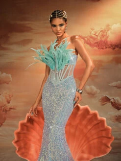 The Mathis Strapless Feather Sequin Maxi Dress will make you stand out in any crowd! With its stunning sequin detailing and delicate feather accents, you’ll feel like a true queen. The strapless design showcases your shoulders, while the flowing maxi length adds an elegant touch. Perfect for any special occasion!
