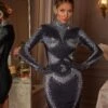 This Mayar V Shape Rhinestone Fringe Mini Dress is the perfect combination of style and glamour. The V-shaped neckline and rhinestone fringe detailing adds a touch of elegance to this mini dress. Made with high-quality materials, it is comfortable and durable, making it ideal for any special occasion.