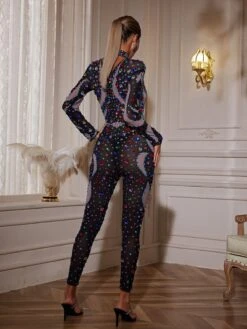 Elevate your style with the Mette High Neck Printed Rhinestone Jumpsuit! With its eye-catching print and sparkling rhinestone accents, this jumpsuit will make you stand out in the crowd. The high neck design adds a touch of sophistication and the all-in-one design makes it effortless to wear. Make a statement with Mette!