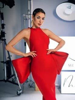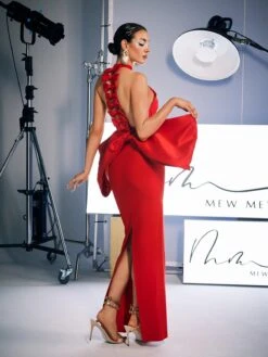 Milada Bow Bandage Split Dress In Red