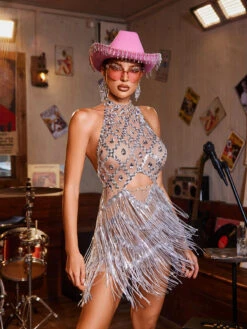 Turn heads with the Myressa Backless Fringe Sequin Crystal Mini Dress, designed to dazzle at every event. This stunning mini dress features shimmering sequins and sparkling crystals that catch the light beautifully, while the playful fringe adds dynamic movement. Its backless design offers a bold, elegant silhouette perfect for making a memorable entrance. Ideal for parties or special occasions, this dress combines glamour and confidence in one irresistible look.