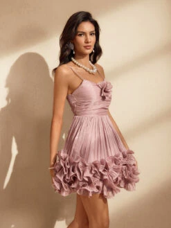 The Naiya Spaghetti Flower Ruffle Mini Dress combines delicate floral patterns with playful ruffle details for a fresh, feminine look. Its lightweight fabric and spaghetti straps offer comfort and ease, perfect for warm days or special occasions. This mini dress effortlessly enhances your style with a flattering silhouette that moves gracefully, making it an ideal choice to turn heads wherever you go. Embrace elegance and charm in one stunning piece.