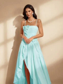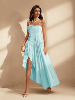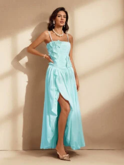 The Nefret Spaghetti Flower Maxi Dress in Mint offers a fresh and elegant look with its soft pastel hue and delicate floral design. Featuring slender spaghetti straps and a flowing silhouette, this dress provides both comfort and style for any occasion. Its lightweight fabric keeps you cool and graceful, making it an ideal choice for garden parties, brunches, or summer outings. Embrace effortless charm and confidence in this beautifully crafted maxi dress.