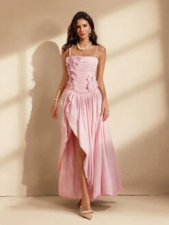 Elevate your wardrobe with the Nefret Spaghetti Flower Maxi Dress in Pink. This flowing maxi dress features delicate spaghetti straps and a charming floral pattern that brings a fresh, feminine touch to any occasion. Its lightweight fabric ensures comfort and ease of movement, making it perfect for warm days or special events. Embrace effortless elegance and stand out with this beautifully crafted dress designed to enhance your natural grace.