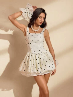 The Neoma Square Neck Dot Mini Dress offers a timeless blend of elegance and playful charm. Featuring a flattering square neckline and a classic dot pattern, this dress enhances your silhouette while adding a touch of vintage-inspired style. Its mini length and comfortable fit make it perfect for both casual outings and special occasions. Step out confidently in a dress that effortlessly combines sophistication with fun.
