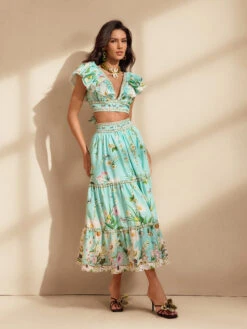 Elevate your wardrobe with the Nerice V Neck Floral Printed Skirt Set, designed to blend elegance and comfort effortlessly. Featuring a flattering V-neckline and a vibrant floral print, this set brings a fresh, feminine touch to any occasion. The lightweight fabric ensures all-day comfort, while the coordinated skirt creates a polished, put-together look. Perfect for brunches, garden parties, or casual outings, this set makes dressing stylishly simple and enjoyable. Embrace your confidence and charm with this versatile floral ensemble.