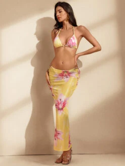 Step into summer with the Nivaz Floral Bikini Three Piece Set, featuring a vibrant floral design that brings fresh elegance to your beachwear. This versatile set includes a bikini top, bottom, and a matching cover-up, perfect for effortless transitions from sunbathing to seaside strolls. Designed for a comfortable, flattering fit, it ensures you feel confident and stylish all day long. Refresh your swimwear collection with this chic and practical set that combines fashion and function seamlessly.