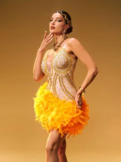 Elevate your wardrobe with our Nyxie Rhinestone Feather Trimmed Mini Dress! Featuring sparkling rhinestone accents and delicate feather trimming, this dress will make you the center of attention. Perfect for a night out, you’ll feel confident and glamorous in this stunning piece.