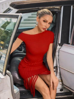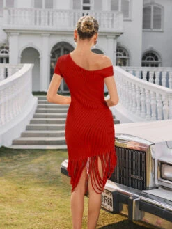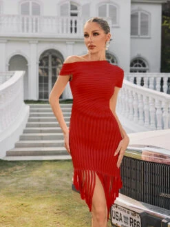 Make a statement with the Olythia One Shoulder Fringe Midi Dress in vibrant red. This eye-catching midi dress features an elegant one-shoulder design complemented by playful fringe details that sway with your every move. Perfect for cocktail parties, special events, or whenever you want to command attention. The flattering silhouette ensures you’ll turn heads while feeling confident and comfortable all night long.