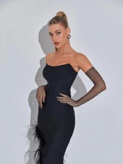 This Pauline Diamond Fishnet Gloves In Black features a diamond mesh design for an eye-catching look. Constructed from a lightweight and breathable material, they guarantee superior comfort and style. Experience the perfect combination of fashion and functionality with this stylish gloves.