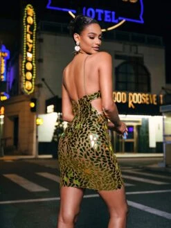 Introducing the Pennie Spaghetti Cutout Acrylic Mini Dress! With its sleek cutout design and lightweight acrylic material, this dress is perfect for any occasion. Turn heads with its unique spaghetti straps and mini length. Show off your style and confidence in this must-have dress.