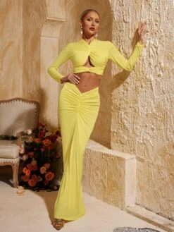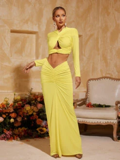 Unleash your inner goddess with Perssis Twisted Ruched Skirt Set. This versatile set features a flattering twisted design and ruched skirt, perfect for accentuating your curves. Elevate any look with this must-have addition to your wardrobe!