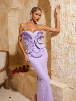 Elevate your style with our Petulah Strapless Ruched Bandage Maxi Dress! The strapless design, intricate ruching, and bandage material enhance your curves, while the maxi length adds sophistication. Perfect for any special occasion, this dress will make you feel confident and beautiful.