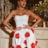 Flaunt your curves and make a bold statement with the Phylo Strapless Flower Bandage Mini Dress In Black. This dress features a figure-hugging bandage design and a stunning floral accent, perfect for any special occasion. Show off your unique style and turn heads wherever you go!