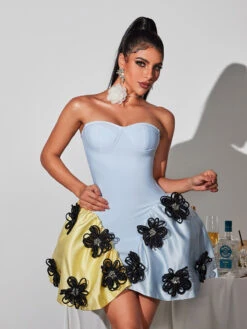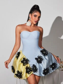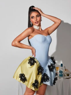 Transform into a blooming beauty with our Phylo Strapless Flower Bandage Mini Dress. The elegant flower design accentuates your curves while the strapless style adds a touch of allure. Stand out in this dress, perfect for special occasions or a romantic evening out.
