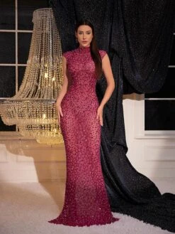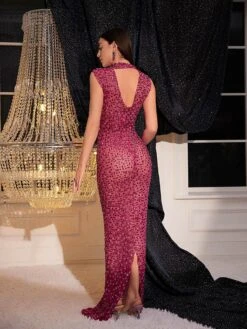 Transform your wardrobe with this sophisticated Protea Back Cutout Rhinestone Mesh Dress. This lovely dress features an intricate rhinestone mesh that’s sure to turn heads. Perfect for special occasions, the back cutout adds an elegant touch. Look your best in this fashionable dress!
