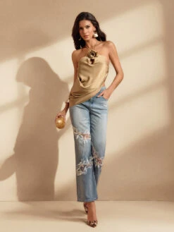 Elevate your summer wardrobe with the Qryndis Halterneck Flower Stain Top. Featuring a flattering halterneck design and a vibrant floral stain pattern, this top combines elegance with a playful touch. Perfect for warm days and casual outings, it offers both comfort and style, making it an essential piece for effortless chic.
