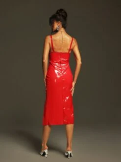 Ignite your style with the Quavious Spaghetti Fire Split Midi Dress. This fiery dress features stylish spaghetti straps and a bold split design that will turn heads. Elevate your wardrobe with this must-have piece and make a statement wherever you go.