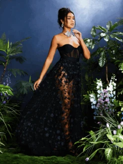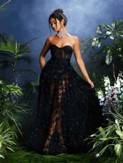 Embrace your inner goddess with the Qunsia Strapless Flower Mesh Maxi Dress! Featuring a stunning floral mesh design and a flattering strapless silhouette, this dress will make you feel confident and beautiful. Perfect for any special occasion or a romantic evening out.