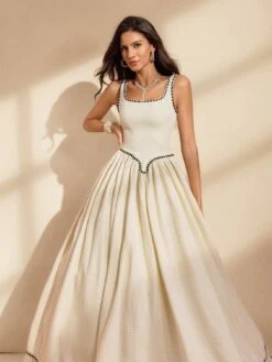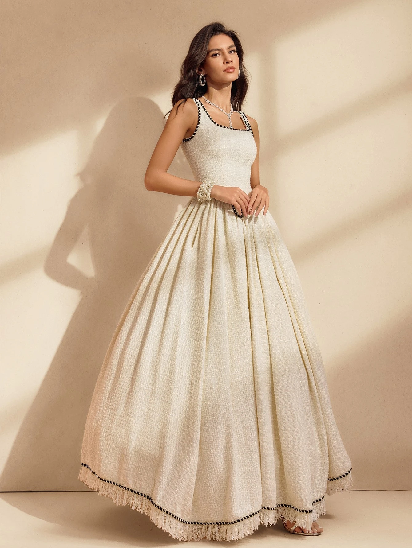 Elevate your style with the Raelyx Spaghetti Fringe Bubble Maxi Dress. Featuring delicate spaghetti straps and playful fringe detailing, this dress combines elegance with a fun, modern twist. The bubble hem adds volume and movement, making it perfect for special occasions or standout everyday wear. Crafted for comfort and designed to turn heads, this maxi dress is your go-to choice for effortless sophistication.