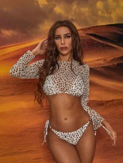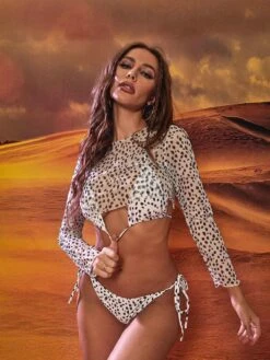Be bold and add some wild flair to your swim wardrobe with the Raisa Leopard Printed Bikini Three Piece Set In Khaki. This long sleeve set features a leopard print pattern perfect for giving your look a fierce boost. With a comfortable three-piece design, you’ll be ready to soak up the sun in style.