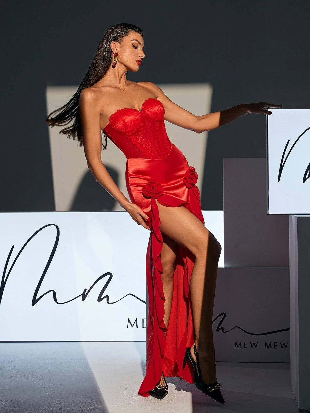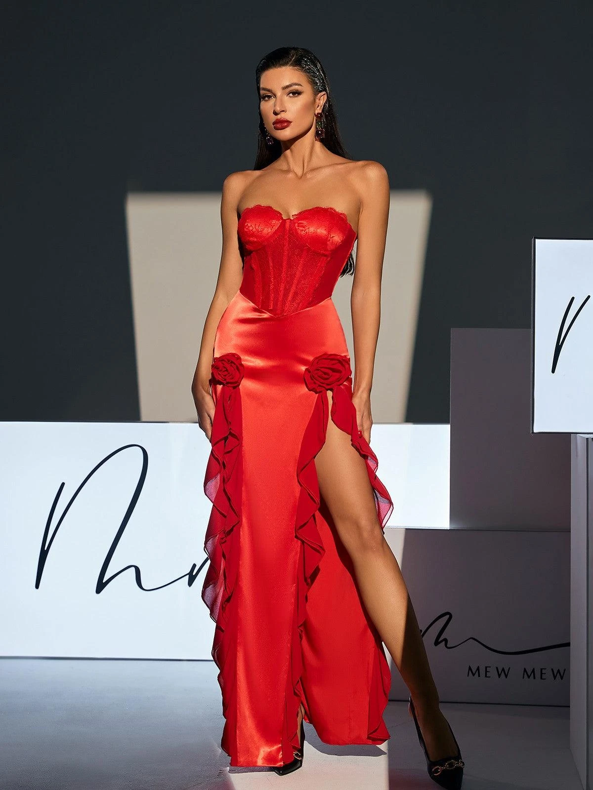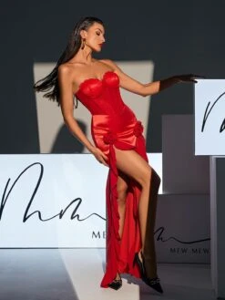 Crafted by expert designers, the Raoul Strapless Lace Tulle Maxi Dress showcases a stunning combination of lace and tulle in a bold red hue. With a strapless neckline and flowing maxi length, this dress flatters your figure and adds an elegant touch to any occasion.