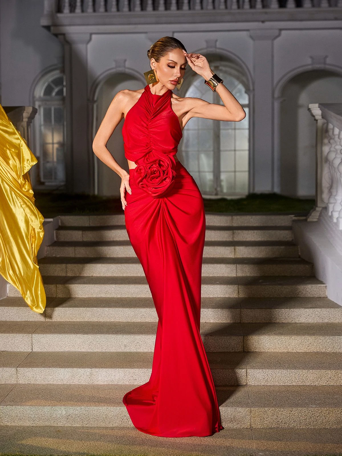 Elevate your style with the Renwick Sleeveless Flower Ruched Maxi Dress! With its stunning flower design and ruched waist, this dress will make you feel confident and beautiful. Perfect for any occasion, from a casual summer day to a special event. Get ready to turn heads and make a statement!