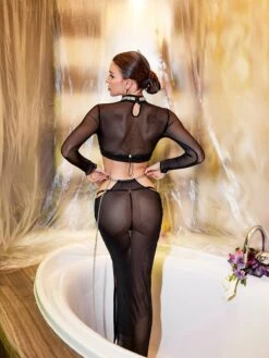 Indulge in the ultimate evening attire with the Reverie Chain Cutout Mesh Skirt Set. This stunning set features intricate chain cutouts and a flowing mesh skirt for a flattering, seductive look. Perfect for a night out, this outfit will leave you feeling confident and irresistible.