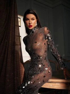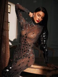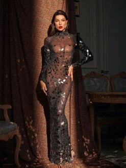 Discover the perfect blend of comfort and style with our Rosina Long Sleeve Acrylic Mesh Maxi Dress! Made with high-quality acrylic mesh, this dress offers a stylish and breathable option for any occasion. The long sleeves add a touch of elegance while keeping you warm. Upgrade your wardrobe today!