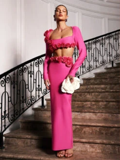 Experience the perfect combination of elegance and charm with our Rufus Flower Bandage Skirt Set in Hot Pink! This stunning set features a beautiful floral design and a flattering bandage skirt that will hug your curves in all the right places. Make a statement and turn heads wherever you go!