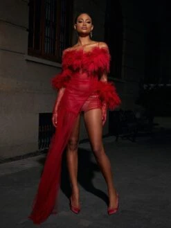 This Satine Spaghetti Tulle Maxi Dress With Gloves was designed with luxury and class in mind. The strapless design pairs with a tulle exterior for a flattering silhouette. The asymmetric hem adds an unexpected twist, and the maxi length ensures a full coverage look. The included gloves complete the look with a dose of sophistication.