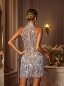 Get ready to shine in the Shaelie Halterneck Rhinestone Fringe Mini Dress! This stunning piece features a halterneck neckline and intricate rhinestone detailing, guaranteed to turn heads. With a playful fringe mini skirt, feel confident and glamorous at any event. Perfect for those who want to make a statement and stand out from the crowd!