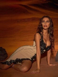 Stand out in style with the Simran Lace Asymmetric Midi Dress. With exquisite lace on a V-neck design and an asymmetric hem, you’ll make a sophisticated statement. The classic midi dress is sure to create a lasting impression.