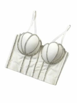 This Solveig Crystal Corset Top will make a statement with its stunning white color and heavy embellishment with clear crystals. Perfect for any special occasion, the luxurious corset top will provide you with the utmost comfort while still turning heads. Feel beautiful and confident in your own skin!