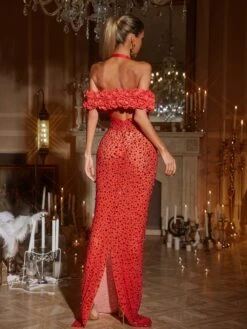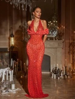 Unleash your inner beauty with our Terance Halterneck Flower Rhinestone Maxi Dress in Red! This stunning dress features a beautiful halterneck design adorned with delicate flower embellishments and sparkling rhinestones. Perfect for any special occasion, this dress will make you feel confident and glamorous.