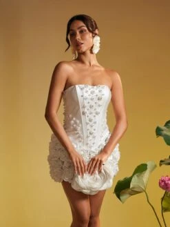 Indulge in the timeless elegance of our Thaddai Flower Pearl Crystal Skirt Set. Adorned with delicate pearls and sparkling crystals, this set exudes sophistication and grace. Perfect for special occasions, this set will elevate your style and leave a lasting impression.