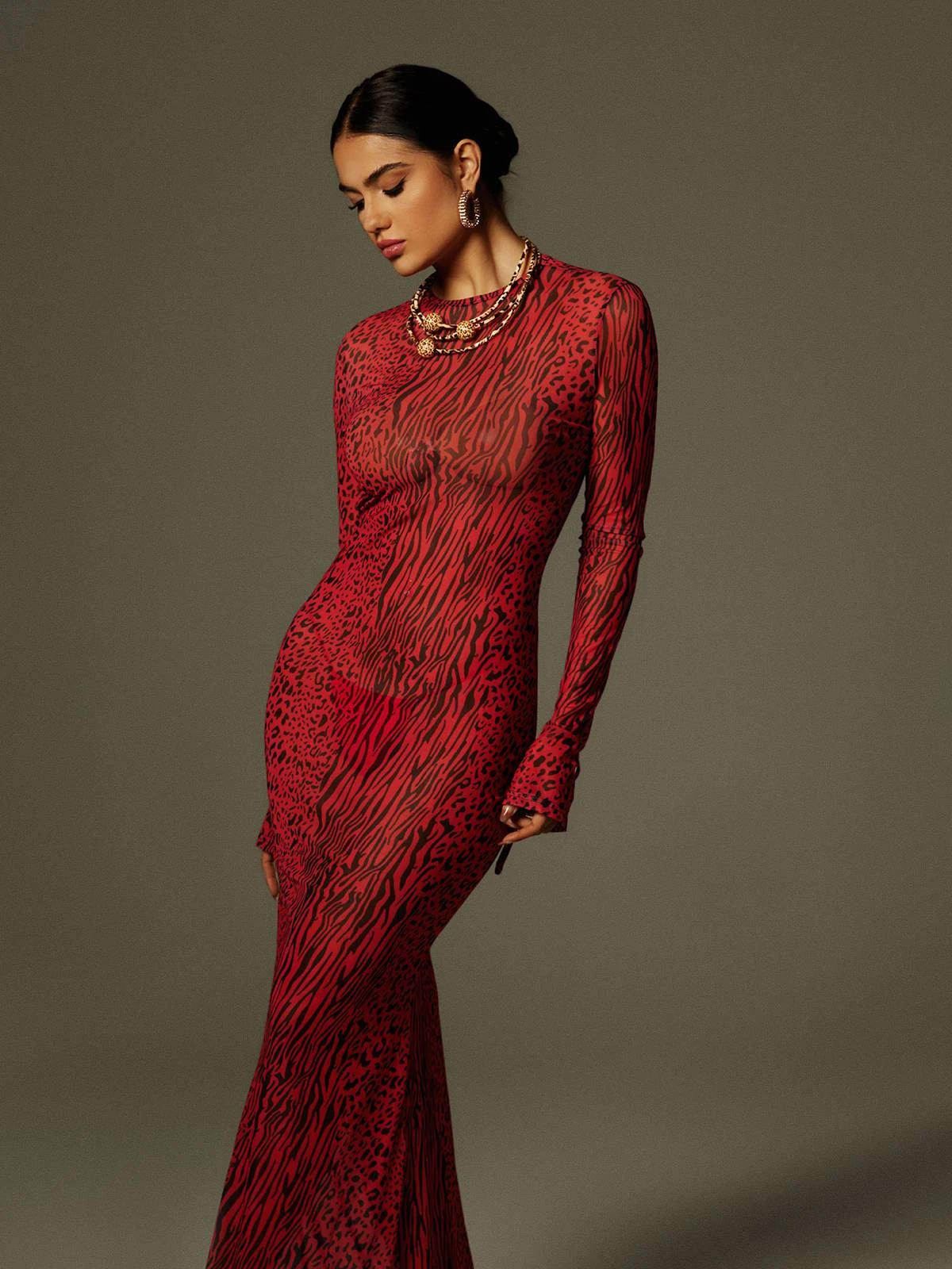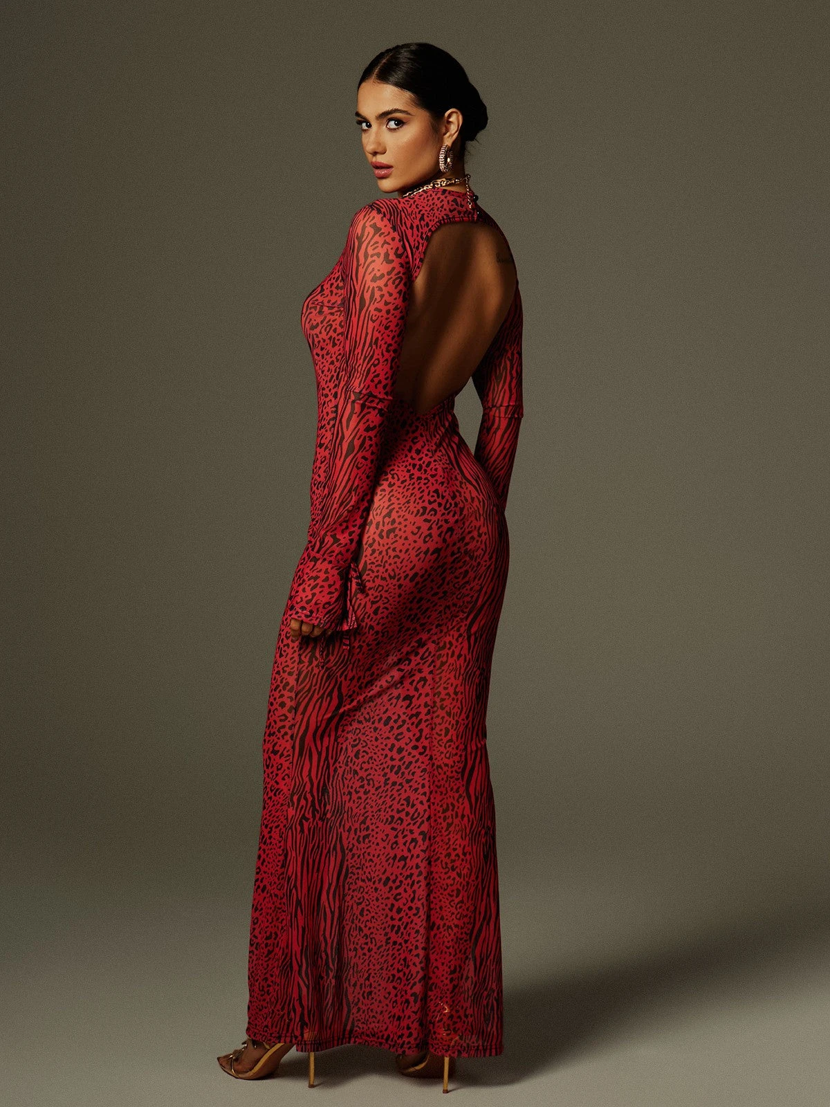 Inspire confidence and elegance with Theophilus Long Sleeve Backless Leopard Maxi Dress. The stunning maxi dress features long sleeves and a backless design, perfect for making a bold statement. The leopard print adds a touch of wildness to your wardrobe, while the maxi length provides a graceful and sophisticated look. Upgrade your style with this one-of-a-kind dress!