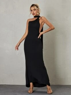 Toula Backless Maxi Dress In Black offers the perfect combination of coverage and elegance. The floor-skimming silhouette features a backless design with a ruched detail that creates an alluring yet modest look. The lightweight fabric will keep you feeling cool and comfortable throughout the day.