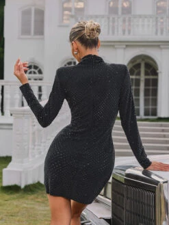 Add some sparkle to your wardrobe with the Tyxara V Neck Rhinestone Mini Dress. Featuring a plunging neckline and rhinestone detailing, this dress is perfect for a night out or special occasion. Make a statement and turn heads with this stunning and glamorous piece.