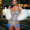 Look breathtakingly beautiful in this Uliana Acrylic Embellished Cutout Maxi Dress In Sliver. Crafted with a blend of intricate details, this maxi dress is perfect for any special occasion. The cutout design and acrylic embellishments create an elegant, show-stopping look that is sure to turn heads! Feel confident and graceful as you make a statement in this amazing maxi dress.