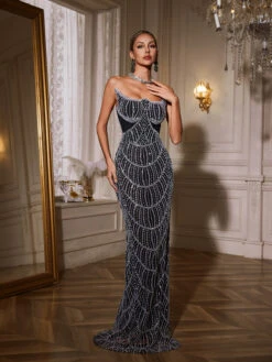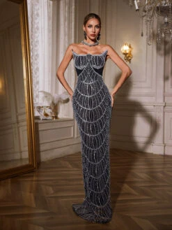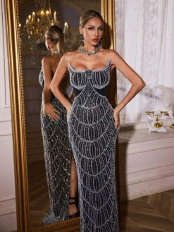 Turn heads effortlessly in the Urythos Strapless Sequin Split Maxi Dress. This dazzling gown features shimmering sequins and a daring thigh-high split, combining elegance with a touch of boldness. The strapless design highlights your neckline and shoulders, perfect for making a memorable entrance at any event. Embrace glamour and confidence with this stunning statement piece.