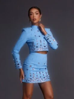 Elevate your wardrobe with the stunning Vallea Long Sleeve Rhinestone Skirt Set. This gorgeous set features intricate rhinestone detailing and a flattering long sleeve design. Perfect for any special occasion, this set will make you stand out and feel confident. Shine bright in Vallea!