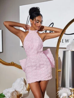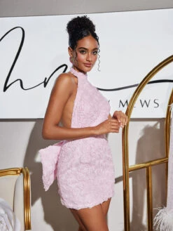 Experience the ultimate blend of elegance and playfulness with our Vedette Halterneck Flower Bow Mini Dress. The halterneck design adds a touch of sophistication while the bow detail brings a flirty and feminine touch. Perfect for any special occasion, this dress will surely make you stand out and feel confident.